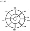 - a plurality of struts 103 are provided in a radial pattern centered on the rotor shaft 5. Conventionally, these plurality of struts 103 have always been disposed at an equal spacings with respect to the circumferential direction of the rotor shaft 5 as shown in FIG. 12 (refer to JP H07-17994 , page 4 and Figs. 4 , 5 ).