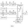 - US 5,739,596 describes an electronic apparatus comprising a main circuit having a main CPU and a power supply system which includes plural main batteries for supplying operating power to said main circuit, a back-up battery, a switching circuit connected between each main battery and the main circuit, power means for enabling the operation of the main circuit, a charge detector for detecting the charging level of each main battery, and power controller responsive to the power means and the charge detector and having a sub-CPU for individually controlling the switching circuit according to either a single connection mode or a multiple connection mode.