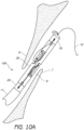 - the second suture catch mechanism is moveable in a distal-to-proximal direction through the septum secundum of the patent foramen ovale to engage a distal end of the first suture catch mechanism with the second suture end portion held by the second suture clasp arm when the second suture clasp arm is in the extended position.