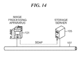 - FIG. 14 is a schematic diagram of a system in which the image processing apparatus writes image data and detailed job information into a storage server.