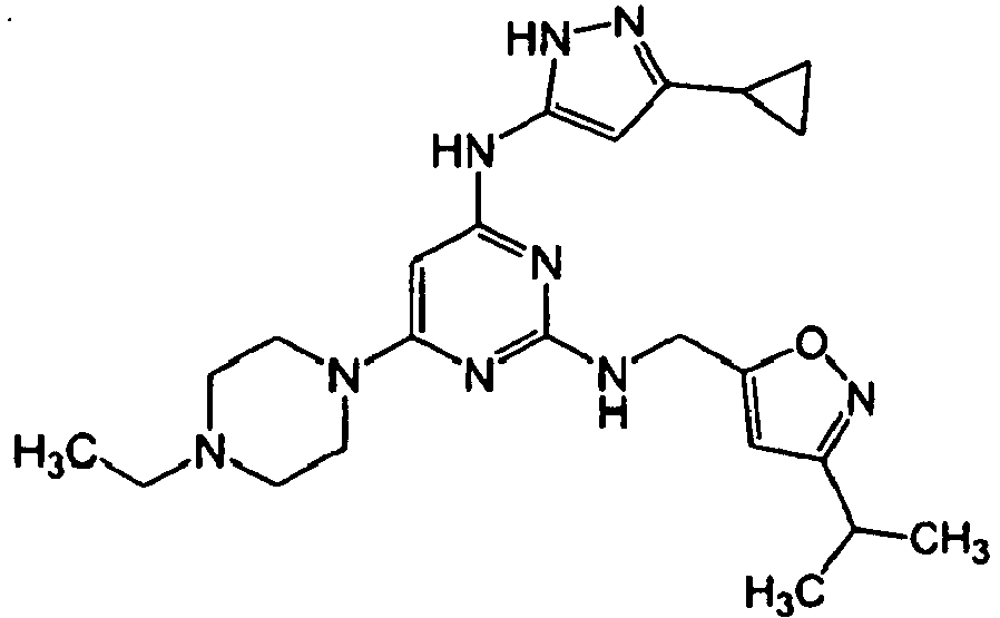 - SABWTVJSJQNFEN-UHFFFAOYSA-N CCN(CC)CCCNc1nc(NCc2cc(C(C)C)n[o]2)nc(Nc2n[nH]c(C(C)C)c2)c1 Chemical compound CCN(CC)CCCNc1nc(NCc2cc(C(C)C)n[o]2)nc(Nc2n[nH]c(C(C)C)c2)c1 SABWTVJSJQNFEN-UHFFFAOYSA-N 0.000 description 1