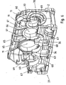 - the side surface has on both housing shells flange surfaces 21 for mounting the fan cowl of a geared fan, which is mounted on the driving shaft of the bevel gear.