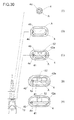 - the disposing frame 26 has frame bodies 27, 27 and base end rails 28, 28. Wall-like frame bodies 27, 27 are provided in a standing manner, surrounding the disposing-part bottom face 25 so as to be provided across the lens traveling axis A, and the base end rails 28, 28 are formed integral with the frame bodies 27, 27 in a manner protruding upward of the disposing bottom face 25.