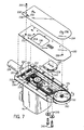 - FIG. 6 is a partially exploded isometric view showing the assembly of the carriage assembly illustrated in FIG. 5 onto the body assembly illustrated in FIG. 4 , with the carriage assembly not yet installed onto the body assembly;