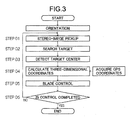- the GPS device has a target being disposed within visual field of each of the two cameras, and wherein the arithmetic processing device calculates a position coordinate of the working implement based on the position coordinate measured by the GPS device.
