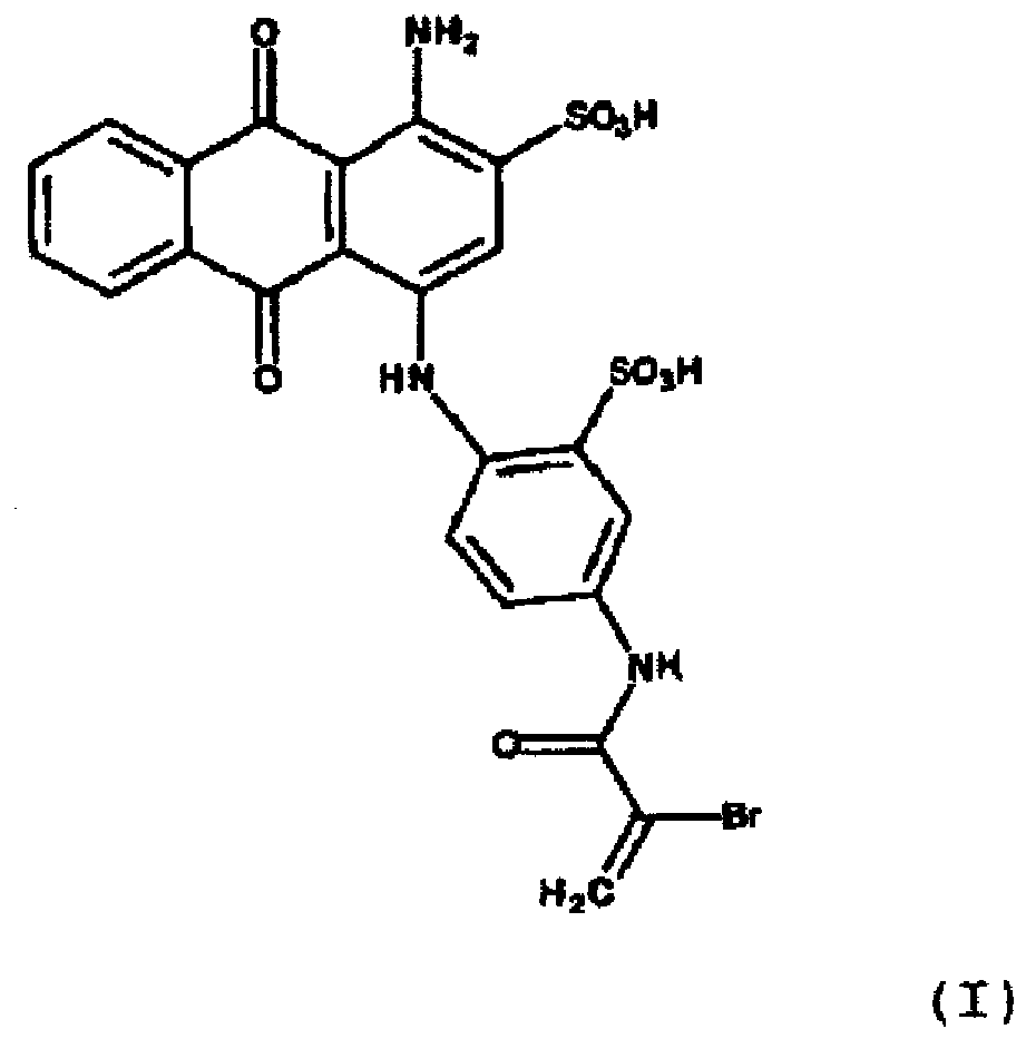 - the sodium salt form of the compound used in the present invention is shown. It is the commercial dye Reactive Blue 69.