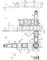 - the direction of feed of the second battery is also transverse to the first axis of alignment of the first battery, movement means being provided in order to divert the objects exiting from the first battery so as to direct them towards the second battery, aligned with the direction of feed of the machines of the second battery.