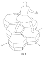 - the dancer 25 shifts his weight or steps off the polygonal element 21, the upper part 23 of the element 21 springs back to its original position.