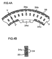 - Figs.19A, Figs.19B depict partial plan/ partial cross-sectional views, schematically showing the structure of an extended portion of a plate of a limiter unit of the torque fluctuation absorber according to a first instance and a fourth instance of Example 18.