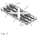 - the mounting frame 3 is formed of four frame struts, two shorter struts 4 and two longer struts 5, wherein on two of the opposite longer struts 5 intersecting support arms 6 are formed.