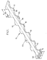 - an extrudable material is extruded through an extrusion head in substantially the shape of a rectangle of which the shortest dimension corresponds to the desired thickness of the flexible stabilizing strip and the longest dimension corresponds to its maximum width, and the material thus extruded passes through a sizing jig in substantially the shape of a rectangle of which the shortest dimension corresponds to the desired thickness of the flexible stabilizing strip and the longest dimension corresponds to its maximum width and the said sizing jig is moved back and forth in the direction of the longest dimension as the extruded material passes through the sizing jig so as to form a plurality of segments.