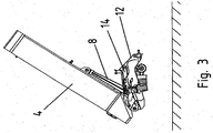 - the lifting mechanism also includes a strong coil spring 16, one end of which is attached to the support structure 12, the other end being attached through an adjustable chain 18 to the arm 8.