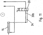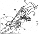 - valve lever 22 In order to lift the arm 8 to the transport position shown in Figure 8 , the valve lever 22 must be rotated further in a clockwise direction to place the valve in a third operational condition as illustrated in Figure 11 . This is achieved by pulling the control cord 28, as shown in Figure 8 . If the control cord 28 is subsequently released, the valve lever 22 will rotate anticlockwise under action of the spring 26 until it contacts the actuator rod 24, thus returning the valve 20 to the second operational condition.