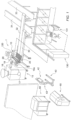 - the production device 1 has a mass feed part 15, which is likewise designed such that it can be moved over the floor and is provided with a storage container 16 for mass, in this example a (kneaded) meat mass, pump means 17 (illustrated highly diagrammatically) for pumping the mass, and a mass feed member 18 connected to the pump means 17.