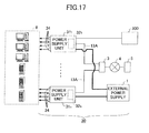 - the respective power supply units 11 include four relays 15 connected to the external power source 1.