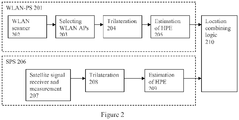 - the disclosure generally relates to hybrid positioning systems and, more specifically, to methods of integrating wireless local area network (WLAN)-based positioning system (WLAN-PS) and satellite-based positioning system (SPS) to improve accuracy of location estimates, increase availability of the positioning service to more users, reduce power consumption, and also to improve estimation of the expected error in a user's position estimate.
