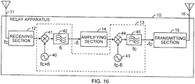 - the transmitting section 15 transmits the received wireless signal, which has been amplified by the amplifying section 14, via the antenna 16.