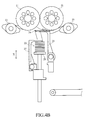 - the pad 26 is arranged on the first carrier unit 25 at the top side and has an elastically deformable characteristic, when only a limited number of web products 22 has been stacked up on the pad 26 , the pad 26 can impart an upward return force F through the web products 22 to the folding fingers 23 (see Fig. 2B ), thereby effectively extending the contact time between the folding fingers 23 and the web products 22 , facilitating making of a neat stack of interfolded web products 22.