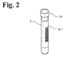 - a blood sample collected from a patient is held within the container, and the opening at the top end is sealed by a cap CP.