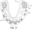 - One method of making indirect bonding trays includes the steps of taking an impression of each of the patient's dental arches and then making a replica plaster or "stone" model from each impression. If desired, the teeth of the model can be marked with a pencil to assist in placing the brackets in ideal positions. Next, the brackets are temporarily bonded to the stone models using a suitable adhesive. An indirect bonding tray is then made by placing matrix material over the model as well as over the brackets on the model. For example, in a thermoforming method, a plastic sheet matrix material may be placed over the model and brackets and then heated in an oven under vacuum.