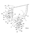 - the mechanism 7 comprises a rod 17, which is fixed by means of screws 18 to the sides 8 and rotates in a pair of holes 19 made in the lateral part of a first box section 20 open at the top.