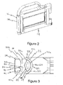 - the sides 23a, 23b include respective arms 36, 38 which project inwardly and are inclined upwardly towards the semi-circular rear face 23c.