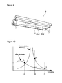 - the resonance characteristics shown in Figs. 2 and 3 are mainly determined by the impedances of the coil L2 of the resonance circuit 12 in the lighting circuit 10, the capacitor C1 which is a capacitive component added to the LED lamp 3 and the light emitting circuit LEDs 1 - n of the LED lamp 3.
