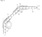 - (a) of Fig. 28 is a view illustrating an ideal thin telescopic arm in which any mechanism having a telescopic function is provided