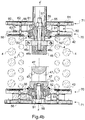 - the Figures 1a and 1b represent a vehicle having a body 1, and two bogies 2 each having two axles 21 and four wheels 22, the axles 21 and the wheels 22 being suspended from the frame 23 of the bogie 2 by a primary suspension 24 comprising four subassemblies 25 .