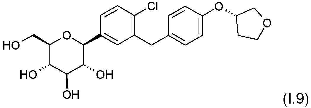 - a pharmaceutical composition comprising the compound 1-chloro-4-( ⁇ -D-glucopyranos-1-yl)-2-[4-((S)-tetrahydrofuran-3-yloxy)-benzyl]-benzene of the formula (I.9), wherein the particle size distribution of the compound of the formula (I.9) in said composition is X90 ⁇ 5 ⁇ m and X90 ⁇ 100 ⁇ m, wherein the particle size distribution is by volume and determined by laser-diffraction method, and wherein said compound of the formula (I.9) represents 1.0% to 20% of the weight of said composition.