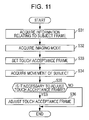 - the touch detection section 23 detects a position (specified position) which is touched when a user touches the screen of the display section 14 based on a signal from a touch panel (not shown) which is installed so as to overlap with the screen of the display section 14. Then, the touch detection section 23 supplies information showing the touch position to the tracking subject recognition section 25.