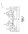 - Figure 1 is a known electronic device 10 having a precision resistor 12 connected to an upper metal layer 14 through a plurality of vias 16 as disclosed in U.S. Patent No. 7,410,879 to Hill et al .