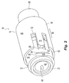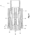 - the arms 70 engage the inclined surface 26 (see Fig. 2 ) and are flexed outwardly.