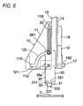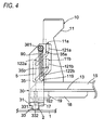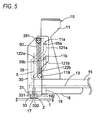 - the sliding member 11 has a laterally symmetrical shape. As shown in Fig. 2 , the sliding member 11 has a first sliding part 111 which is opposed to (or contacted with) a first side wall part 35, which will be described below, thereby to slide relative to each other, and a second sliding part 112 which is opposed to (or contacted with) a second side wall part 37, which will be described below, thereby to slide relative to each other.