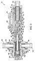 - the sleeve is sealed to an inner wall of the housing 10 by suitable seals, such as o-ring 60 and back-up rings 62 and 64 at an upstream end of the sleeve, o-ring 66 and back-up rings 68 and 70 downstream of o-ring 60, and o-ring 72 and back-up rings 74 and 76 downstream of o-ring 66.