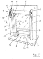 - This gate column 10 ' is at least formed by two legs arranged substantially at right angles to each other, a front 18 and a wall side 21. Starting from the front plane FE of the front 18, the outer wall sections of the front 18 escape, so that on both sides of a guide slot 16 in the body of the column 10 'each a relaxation channel 24 is formed.