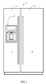 - FIG. 1 illustrates a refrigerator 10 having a fresh food compartment 14 and a freezer compartment 12.