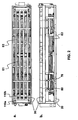 - the twistlock is then guided to the upper lateral bulge of the magazine and pushed into the magazine 60 with the aid of the rake 50b shown below, which is part of the transfer device 50.