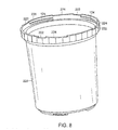 - the inside of the cup opening 21 includes rib segments 24 that extend inwardly from the inner wall of the cup. These rib segments 24 are generally perpendicular to the axis 25 of the container 20 and may be pitched slightly downwardly toward the closed end of the cup to act as screw threads for securing the lid to the cup.