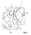 Fig. 1 in perspektivischer Darstellung einen Ausschnitt des Elektromotors bzw. seines Getriebegehäuses auf die Lagerstellen ohne die Getriebeelemente und ohne die Abtriebswelle, ausgebildet nach dem Stand der Technik, -