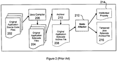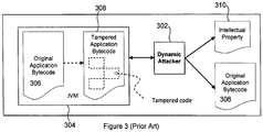 - the present invention provides an apparatus for increasing tamper-resistance of Java bytecode, including: a protection tool for applying security to Java bytecode during build-time; a security module accepting secured Java bytecode from the protection tool and launching the secured Java bytecode during run-time; and one or more protection mechanisms integrated with the protection tool and the security module; wherein one or more protection mechanisms operate to counter static and dynamic attacks to the Java bytecode.