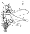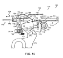 - FIG. 9 illustrates a lock system for locking and unlocking a second drive system of the handle of FIG. 2 , wherein the lock system is illustrated in an unactuated and locked configuration.