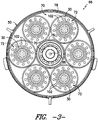 - FIG. 3 illustrates a cross-sectional view of the combustor 20 shown in FIG. 2 taken along line 3-3, particularly illustrating one embodiment of a combustion liner cap 66 of the combustor 20 looking upstream from the combustion chamber 62.
