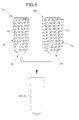 - Fig. 9 is a view illustrating four fixtures of different sizes placed in a hole (H) of an alveolar bone.