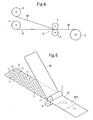 - Patent Document 5 Japanese Patent Publication 59-133043 A states a laminate sheet production process in which a surfacing material is continuously affixed, by using an adhesive, to the surface of a substrate that is made of a soft polyurethane foam, while the substrate is unrolled from a stock roll.