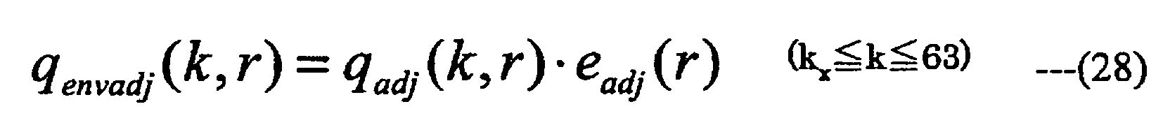 - the temporal envelope shaping means after controlling a gain of the adjusted temporal envelope so that power of the high frequency component in the frequency domain in an SBR envelope time segment is equivalent before and after shaping of the temporal envelope, preferably shape a temporal envelope of the high frequency component by multiplying the temporal envelope whose gain is controlled by the high frequency component in the frequency domain.