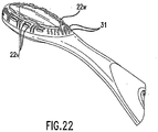 - Ridges along the sides of head 12 could also be used with central ridges; i.e., side ridges 22p, 22t, 22v could be used with a central ridge(s) such as an oval or partially oval ridge 22q, 22u, 22w ( Figs. 18 , 21 and 22 ), any of the ridge patterns illustrated in Figures 1a-c and 4-17 , or another ridge pattern. Any of the ridges could also be used with various projections, e.g., conical projections 31 (see, e.g., Figs. 16 and 18-22 ). In Figure 19 , an arrangement according to the invention which comprises linear ridges 22r and conical projections 31 is illustrated.