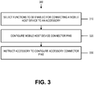 - the host device requests information from the accessory device, selects the connector functions to be enabled, and instructs the accessory device to enable the selected connector functions.