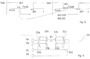 - Said converter designated as a whole by the reference number 10, comprises a generator 11 of input voltage Vin that supplies said input voltage Vin to an H-bridge 12, which is of the full-bridge type and comprises four switch modules 13a, 13b, 13c and 13d.