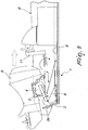 - the rotation of the panel 5 allows a lowering and forward movement of the outboard motor A, while the slider 8 allows a further possibility of translation.